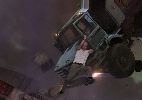What matters is that the Russian government has given one of their cities and a major highway to the filmmakers to completely destroy. Along with at least 100 cars. “Take it all,” they must have said, “we have plenty more. Blow it all up.” And so they do. In an attempt to look totally badass, the film’s opening car chase scene features a heavy armoured vehicle with the baddies, a delivery van with Jack and the Russian guy with the secrets he’s rescued for the CIA and John McClane in a Mercedes truck and then a Mercedes SUV.