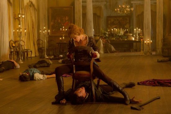 So Abraham Lincoln: Vampire Hunter – yes the title is the only thing going for it – is trying to be a Rock ‘n’ Roll Abe Lincoln, this cool dude who used to slay vampires before becoming President of the US of A. Benjamin Walker… (snore)… sorry… Ben Walker plays the titular dud with the dexterity of a snail on sleeping pills. In order to make him seem fast they put in these quicker-than-you-can-see-em action scenes. But then, but then they slow them down in slow motion to try and look cool. NOT. Copy cats. Fucking copycats. Oh my god! There’s a scene in there with a herd of horses furiously galloping away and Abe and a vampire running through it, jumping on one horse to another, the vampire picking up and hurling horses at honest Abe. Looks like a video game.
