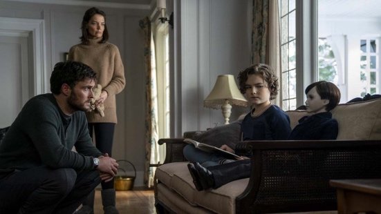 A Brit family are traumatised in their home and decide to seek refuge in the quiet countryside in a guest house near the above mentioned castle/mansion. Their son Jude (Christopher Convery) stumbles upon the doll called Brahms and then of course he is recruited into the doll’s service, to follow his rules and make a nuisance of himself. The parents (Katie Holmes, Owain Yeoman) are pretty dumb, taking the doll in and cleaning it as if they are doll restorers. Initially it’s about providing a comfort item for their son who hasn’t talked after the traumatic incident at their city house. They do realise the doll’s upto no good soon enough but fail miserably to do anything about it.