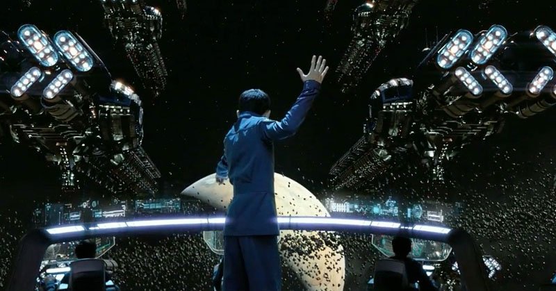 The film starts off much like Roland Emmerich’s Independence Day ended. A huge fleet of alien ships attacking earth and a sole jet fighter pilot taking his plane directly into the lead ship on a suicide mission thus destroying it and disabling the enemy fleet. Mankind has suffered many millions of losses but the ‘bug’ aliens are sent packing thanks to Mazer Rakham, the hero pilot. What’s with the name? Mazer Rakham, seriously? Yes I know that’s the name in the book but even After Earth has this weird character name for Will Smith – Cypher Raige! What happened to good old-fashioned names like Ripley, Skywalker and Kirk!
