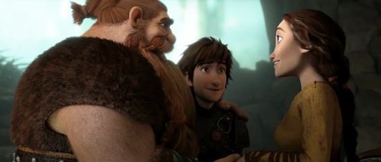 - Stoick (Gerard Butler), Hiccup (Jay Baruchel) and Valka (Cate Blanchett) in How To Train Your Dragon 2