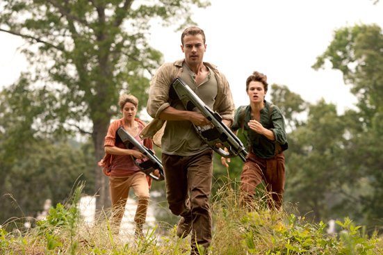 In Divergent, Tris (Shailene Woodley) and her beefy boy Four (Theo James) are on the run from Jeanine’s (Kate Winslet) Erudite army who want to wipe out the ‘Divergents’ from the organised and walled dystopia they call home.