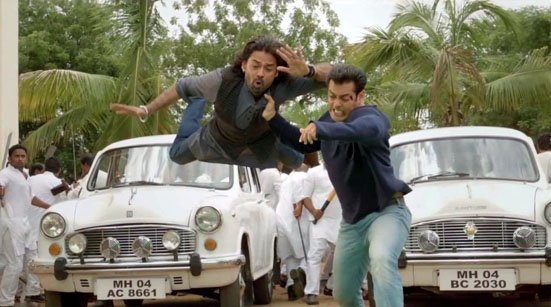 - Salman Khan trashes the bad guys and kicks vehicles in Jai Ho
