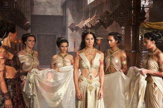There’s one strange alien race of green, fourhanded tribals called Tharks (similar to Avatar’s blue men) and two races of humanoids called Heliums (or is it Heli-ites?) and Zondangans. Then there’s an immortal set of beings called Thern’s lead by Matai Shang (Mark Strong) who are manipulating all the Martians for their own purposes. I won’t get into more names because they’re unpronounceable and after a while I didn’t know who was fighting whom.