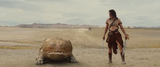 What John Carter (of Mars) – they couldn’t even get the title, so it’s John Carter in the beginning and then John Carter of Mars at the end credits – does is show us the same old saga of fish-out-of-water hero in another timeline on another planet fighting a war that is not his. In this case, John (Taylor Kitsch) is a reluctant warrior as back home in Virginia he chooses to hunt for gold in caves rather than fight the Civil War against the native Indians. On Mars, he has more motivation since a beautiful princess called Dejah Thoris (Lynn Collins) wearing very little wants him to fight right behind her (the view must be nice from there).