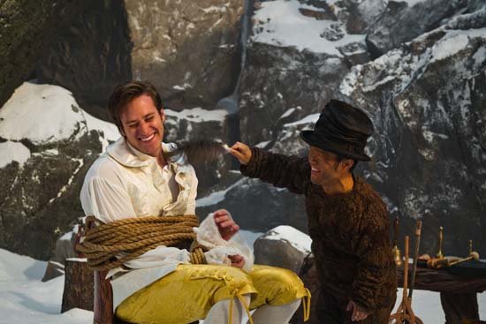 There’s tons of slapstick and childish dialogue in Mirror Mirror maybe because it appeals to a certain audience or maybe because Tarsem thought that Bollywood is big now and that would make for a ‘mass’ film. He doesn’t need a mirror to tell him he was wrong. A thin plot involving overthrowing the Evil Queen and stopping her from brainwashing the Prince of Valencia (Armie Hammer) is stretched out considerably, gnawing at your nerves at times.
