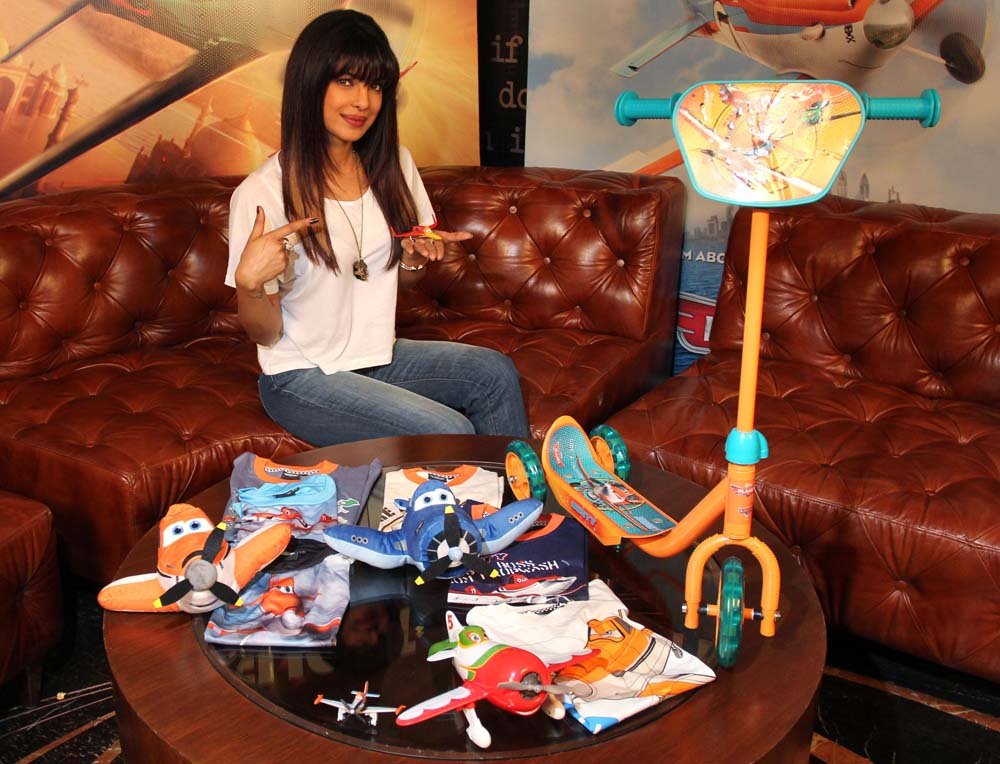 - Actor Priyanka Chopra (voice of Ishani) poses with merchandise from the PLANES film
