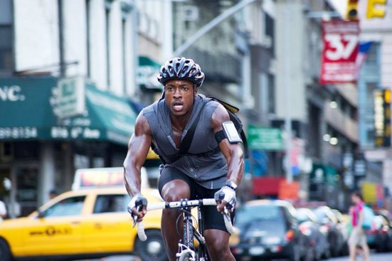 Director David Koepp is well known for his writing creds with films like Spider-Man, Jurassic Park, Panic Room, War of the Worlds, Mission: Impossible but not so much for his directing prowess. He’s given us some adrenaline packed bike chases but if you notice carefully you’ll see the same NY road being used throughout the film. And they’ve done this whole Sherlock Holmes ‘slo-mo alternative prediction’ thing. Like when Wilee has to take a route fast he’ll think: and they show with the aid of a yellow graphic line possible routes and outcomes. Take one and he crashes violently into a truck. Take another and he’ll know exactly when the cab door opens and then shuts so he can get around it. Lots of Apple Maps-type graphics pervade the film too.