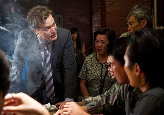 Anyway so her roommate Nima (Jamie Chung) is the one who gives Wilee the envelope to deliver to someone in China Town. Okay, so then you have a dirty NY cop called Bobby Monday played by Michael Shannon (you must watch him in Take Shelter) who’s knee deep in gambling debt, gets beaten up by the Chinese mobsters running the dens of vice, and then he beats one of them up and kills him. So now he has to repay the debt and for that he needs to get the envelope. Why? Well I’ll let you find that out cause otherwise there won’t be much to keep you interested in the film.
