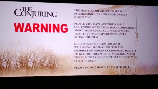 Made by the same man, James Wan, who directed the first Saw film – which was infinitely more clever and gripping than The Conjuring – this film about possession and exorcism didn’t do anything for me. Not even with help from the pre-film ‘statutory warning’ (see below) slide telling viewers of how weird things happen to people who have watched the film, because it’s that scary and real!