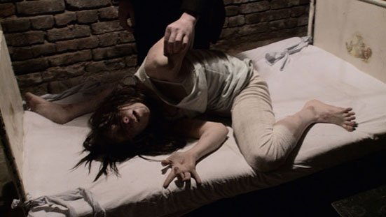 This is the scene of the movie. The girl who they exorcise is mangled, contorted, and is obviously possessed by a super devil. She spouts obscenities at the priests: “I want to suck your cock” and bleeds from her vagina. It’s the most disturbing and scary scene in the film. Of course the demon is exorcised but then there is something called transference, if you get my drift.