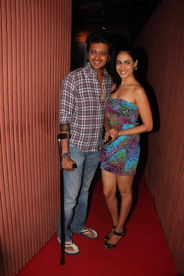 What a sweet looking couple. I love Genelia’s dress; it shows off her lovely figure and the colours are so youthful and fresh, as is her whole look. Unpretentious and not too made up with a simple pony tail and minimal make up, she is like a fresh breeze in Bollywood’s heavy ensembles. Her shoes, clutch and jewellery are the perfect complements for this look.