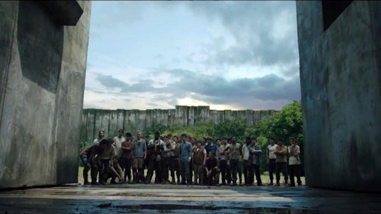Young dude Thomas (Dylan O’Brien) is couriered up by express elevator to The Glade, a green landscape ensconced by four walls. A group of multi-ethnic boys have gotten here one by one every month in the same way with no memory of who they are except their names. One of the walls opens during the day to an outer ring of more walls that form a maze filled with Grievers – giant biomechanical spiders – that can sting the Runners (boys who jog around it to map and find a way out). If you are stuck outside after the gates close then you’re dead. Guess who manages to survive?