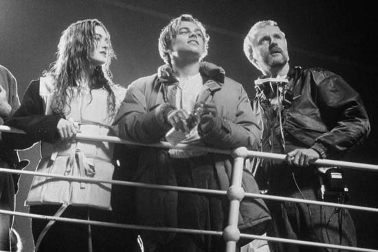 Directed by James Cameron. Starring Leonardo DiCaprio, Kate Winslet, Billy Zane, Kathy Bates, Gloria Stuart, Bill Paxton.
