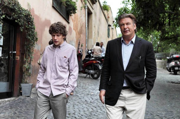- Actors Jesse Eisenberg and Alec Baldwin in the movie To Rome With Love