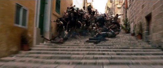- Forming a human mountain yet again in World War Z